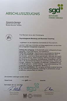Im Juni 2024 habe ich mein Fernstudium als Psychologischer Berater – Personal und Business Coach erfolgreich abgeschlossen.